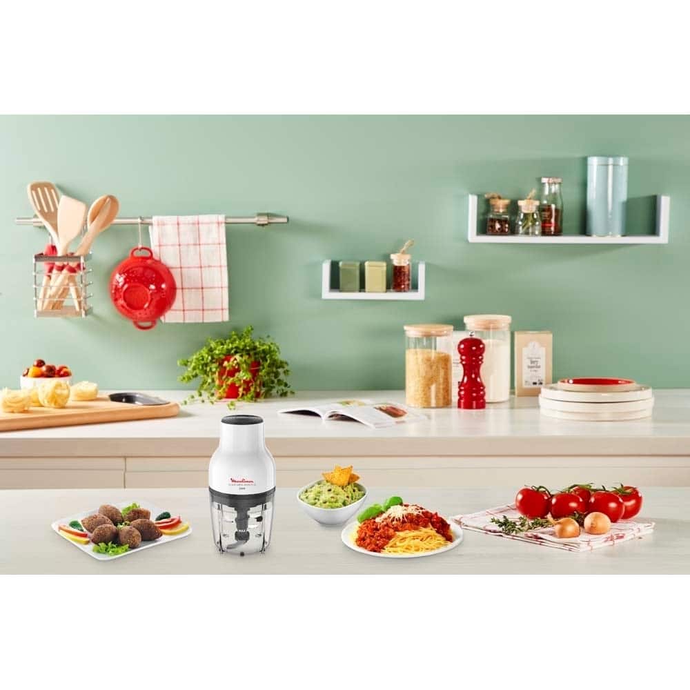 ✔ קוצץ 3 ב-1 – לחיצת כפתור אחת מאפשרת גם לקצוץ, גם לטחון וגם לערבב