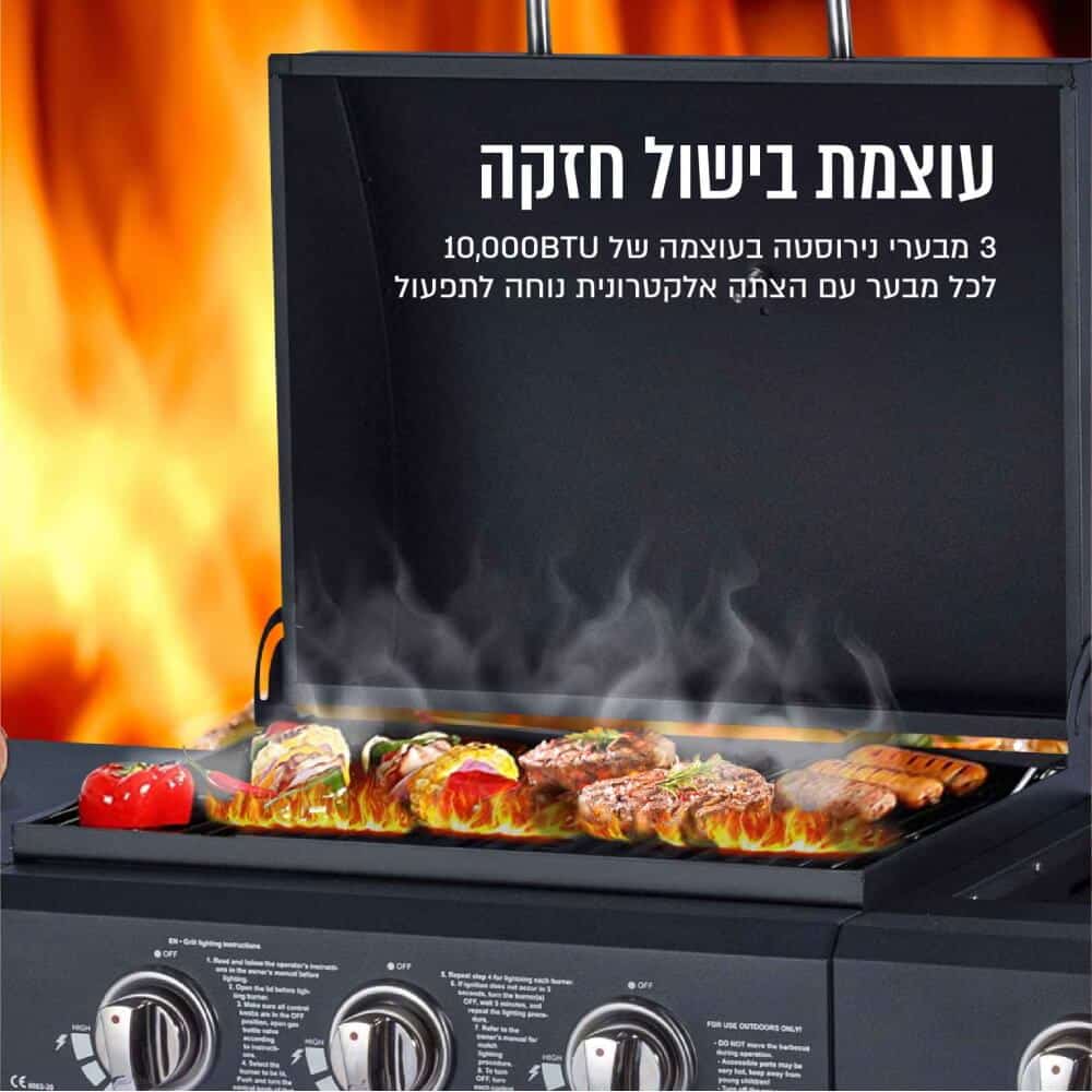 עוצמת בישול חזקה: 3 מבערי נירוסטה בעוצמה של 10,000BTU לכל מבער עם הצתה אלקטרונית נוחה לתפעול