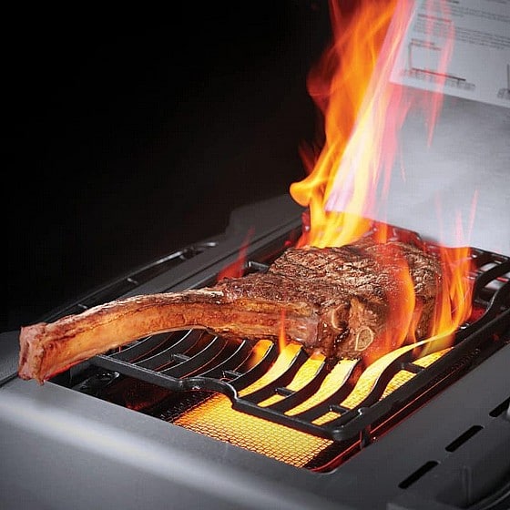 חמישה מבערים מנירוסטה איכותית במיוחד בעוצמת חום של 12,000 BTU כל אחד. סה”כ לכלל המבערים על גבי משטח הצלייה 60,000 BTU.