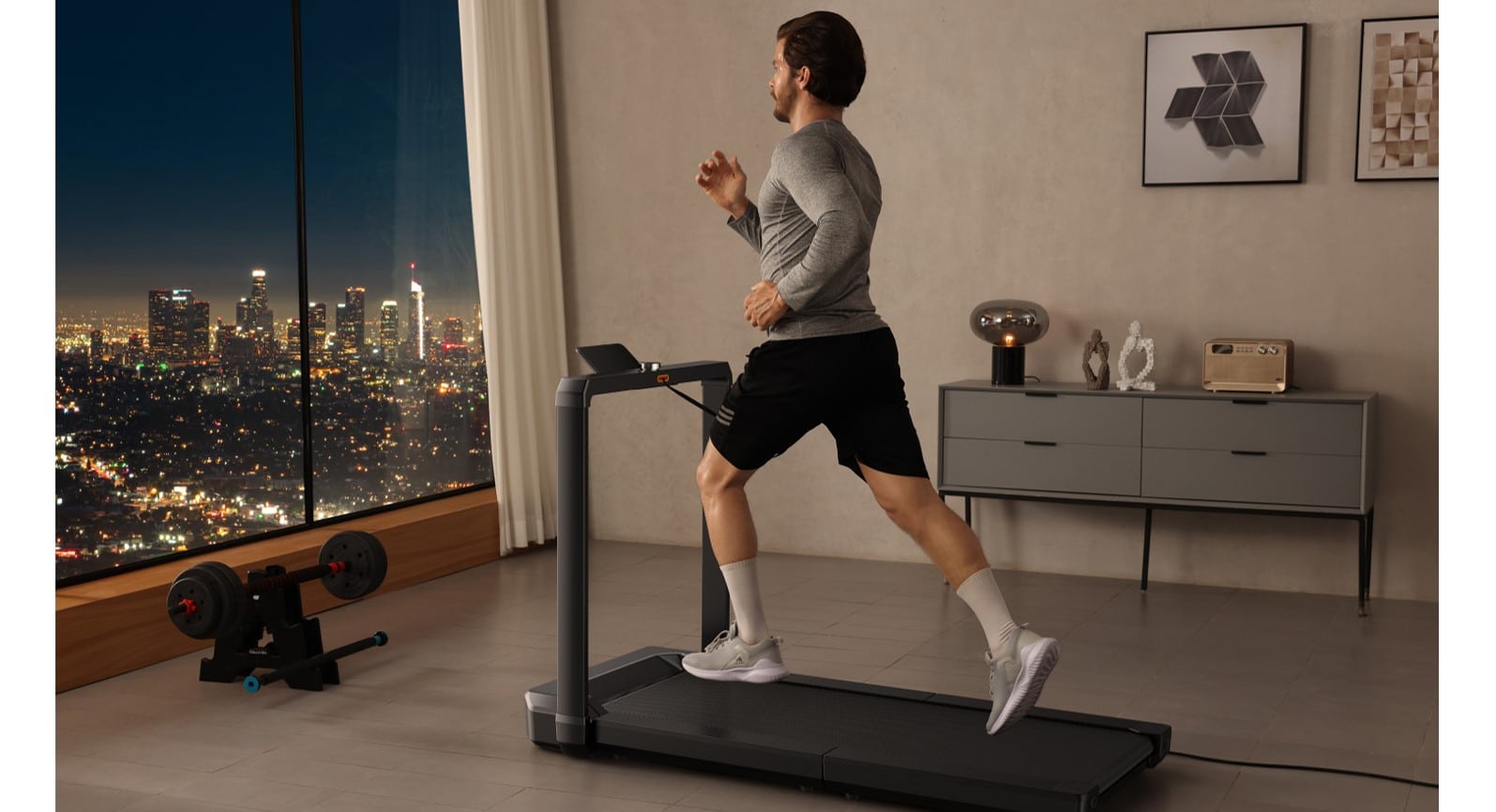 במצב מקופל, ההליכון תופס שטח של 0.21 מ”ר, עם מידות של 270 x 772 x 1029 מ”מ, כך שהוא קומפקטי במיוחד ויתאים לאחסון בכל חדר, גם אם הבית שלכם אינו מרווח במיוחד. תוכלו לאחסן את ההליכון מתחת לשולחן, מתחת למיטה, או אפילו צמוד לקיר.