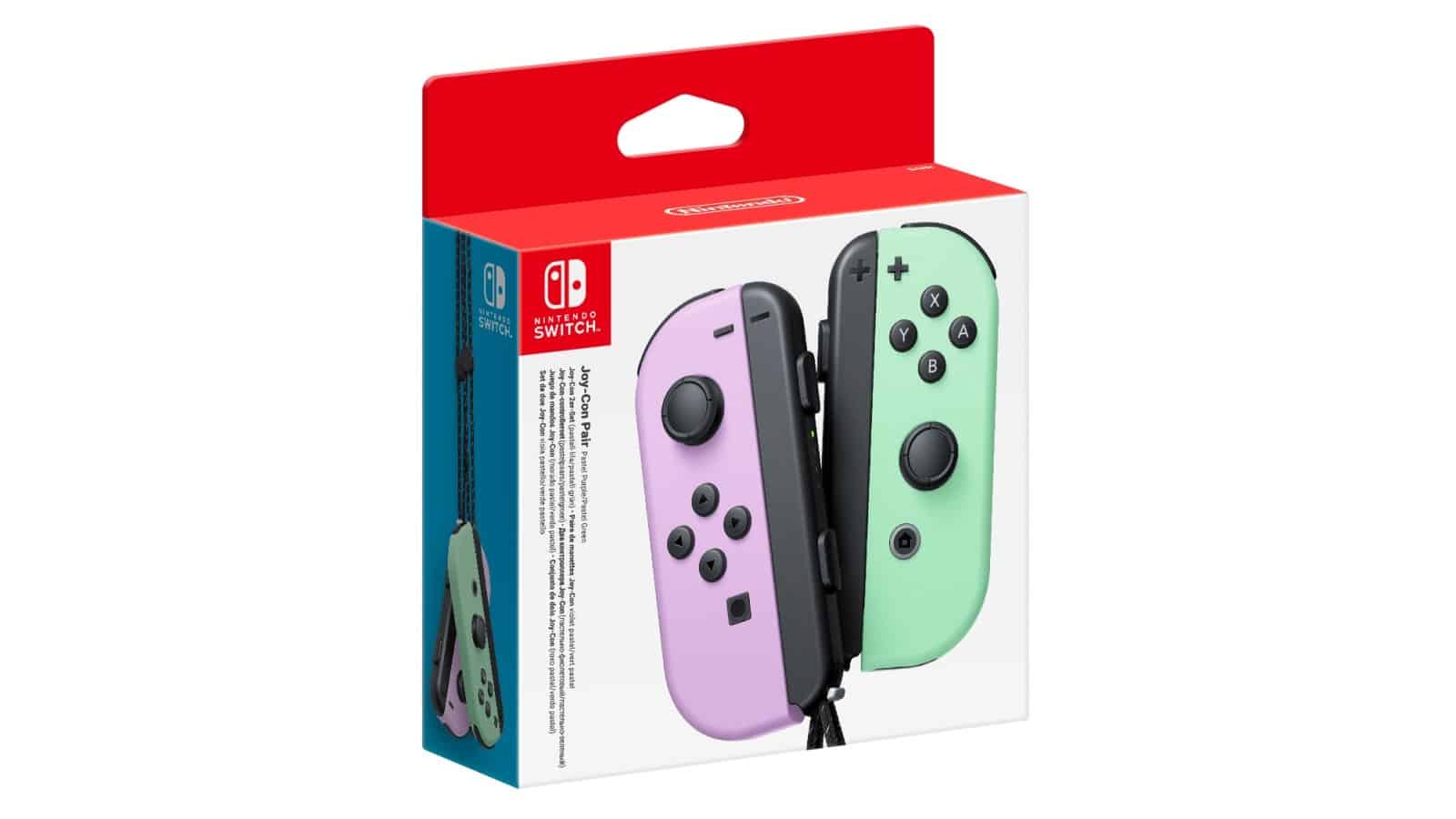 זוג בקרי ג’וי-קון לקונסולת נינטנדו סוויץ’ בצבעים סגול פסטל וירוק פסטל.