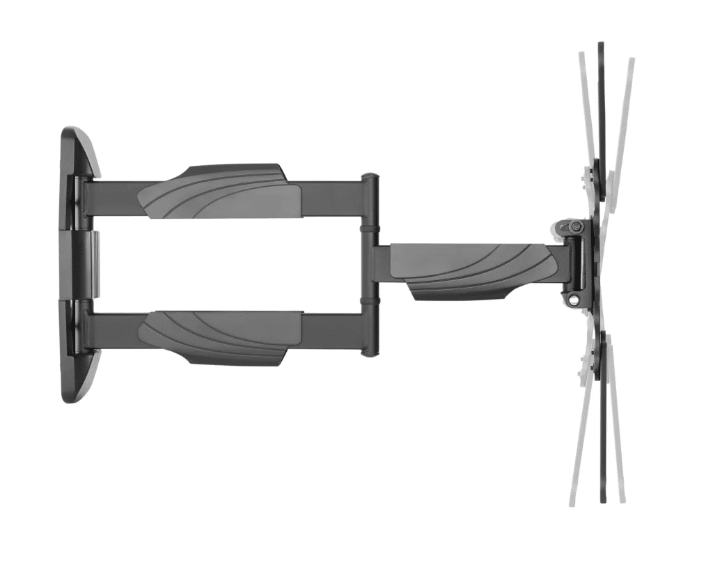 למתקן צידוד אופקי בטווח של 90° בכל מפרק ואפשרות הטייה בתושבת המסך