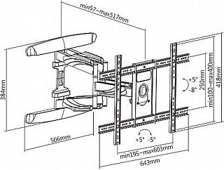 ניתן למתוח את הזרוע עד 51.7 ס”מ מהקיר