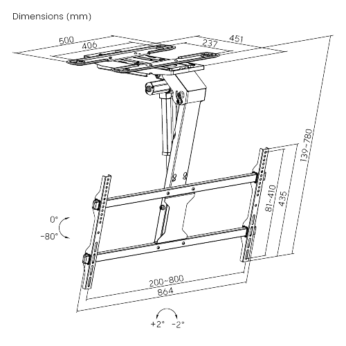 זרוע תקרה חשמלית למסכים עד “86 עם אפשרות צידוד