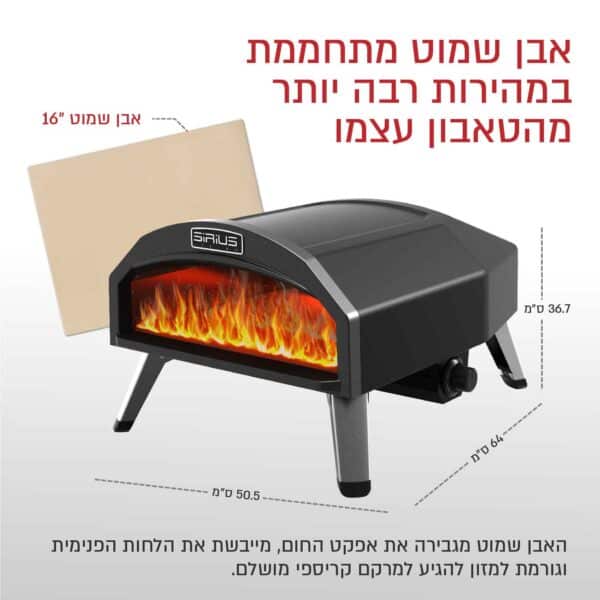 • אבן שמוט בקוטר “16 – מתחממת במהירות רבה יותר מהתנור עצמו ומגבירה את אפקט החום
