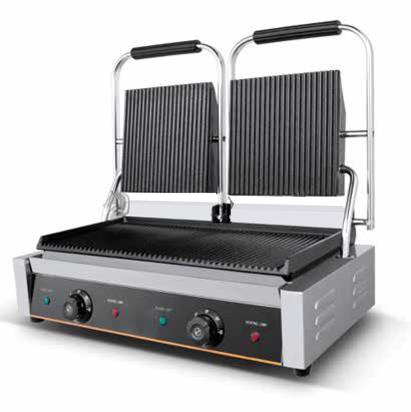 מגיע עם משטח בישול גדול במיוחד, הפלטה התחתונה והעליונה משוננת, עם טווח טמפרטורה של עד 300 מעלות!