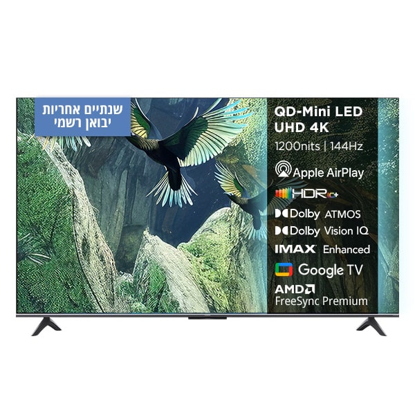 רזולוציית Ultra HD 4K 3840×2160 בטכנולוגיית Mini LED ומרחב צבעים גדול לחוויה חדה, מציאותית ועשירה בצבעים; טכנולוגיית Mini LED עם 392 אזורים עצמאיים המספקים שליטה מדויקת על תצוגת התמונה (חוויית HDR טבעית ועמוקה) ומספקת פרטים מעולים ואפקטים של אור וצל;