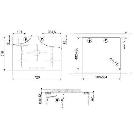 כיריים גז זכוכית שחורה 72 ס”מ סמג SMEG דגם PV175N2
