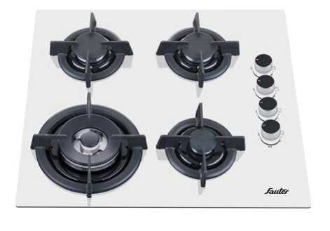 כיריים גז מודרניים מבית SAUTER עם משטח זכוכית לבנה נוצצת, המעניקה למטבח מראה אלגנטי ומואר. ארבע להבות עוצמתיות מאפשרות בישול מדויק ומהיר, עם נוחות מרבית לתפעול יומיומי. מתאים למטבחים מודרניים שמחפשים שילוב של יופי ופונקציונליות.