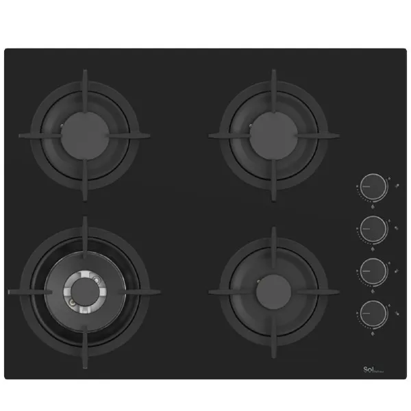 כיריים גז 4 להבות 60 ס”מ דגם SOL S6GBM-855 סול זכוכית שחורה