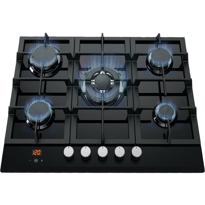כיריים גז 5 להבות Ly Vent ליוונט דגם HO-T-676 זכוכית שחורה + טיימר