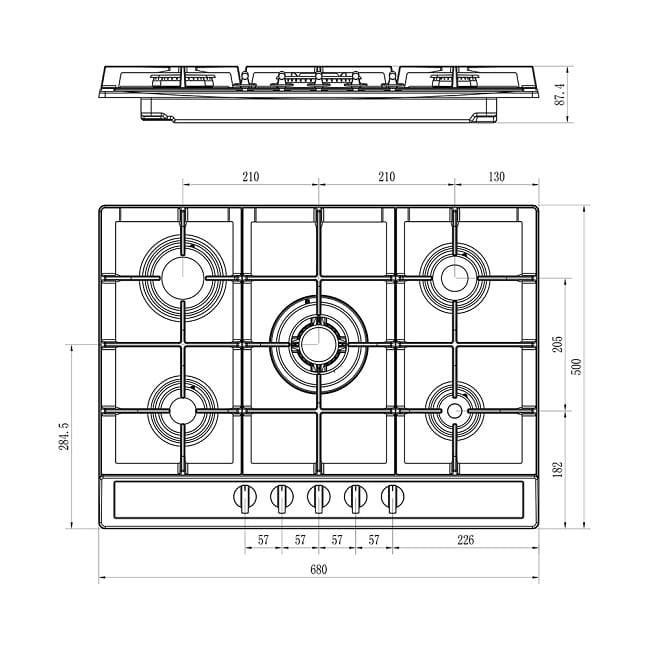 כיריים גז זכוכית נירוסטה בעיצוב איטלקי -5 להבות