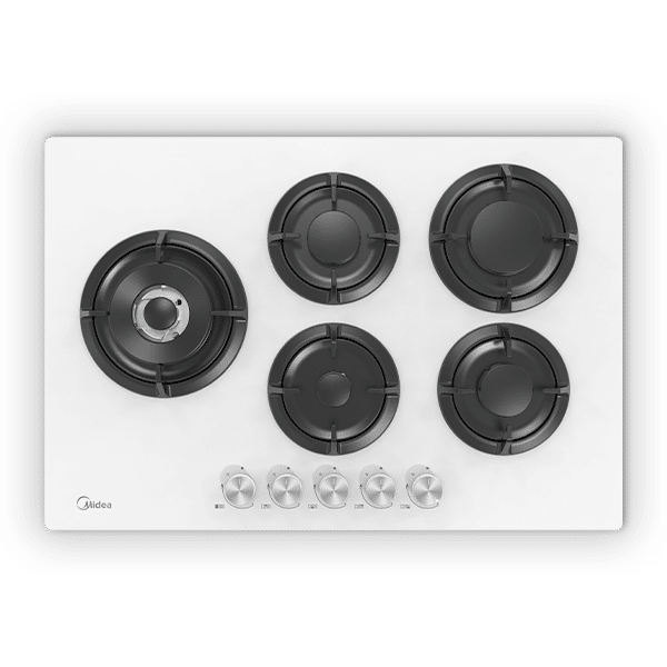 כיריים גז 5 להבות Midea מידאה 75GP503-W/6753 זכוכית לבנה