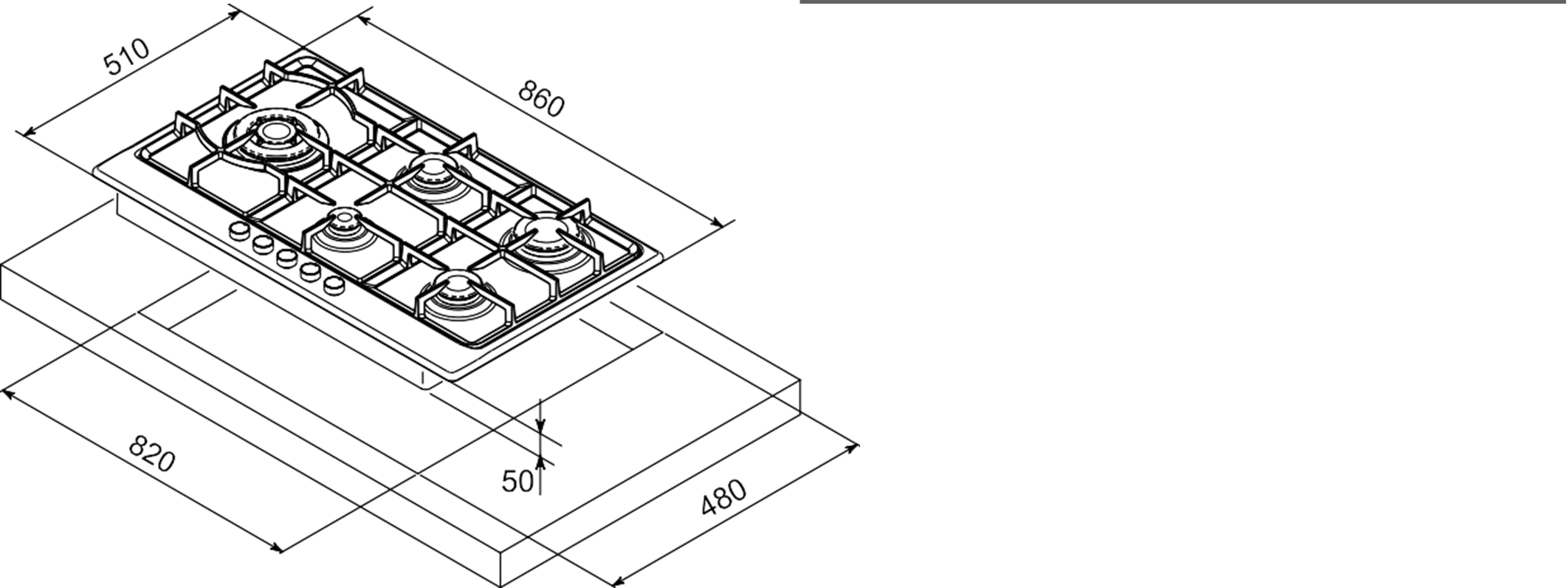 אזורי בישול להבה קטנה 1.00kW | 2 להבות בינוניות 1.75kW