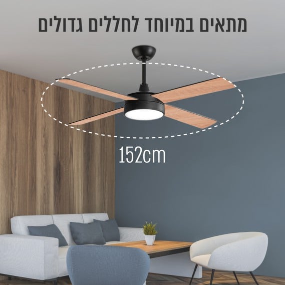 מאוורר תקרה מעוצב “60 עם כנפיים מתחלפות ושלט מבית TAIYO טאיו דגם SIERRA-60
