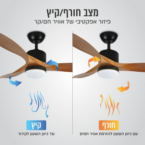 מצב חורף – כאשר מכוונים את מאוורר התקרה ל”מצב חורף” משנים למעשה את כיוון פעולת הסיבוב של הכנפיים