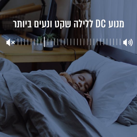 מנוע נחושת מלא מקצועי ואיכותי הדור החדש של מנועי DC מאוורר שקט לשינה טובה עם רוח נעימה הנושבת בעדינות, ללילה שקט ונעים ביותר