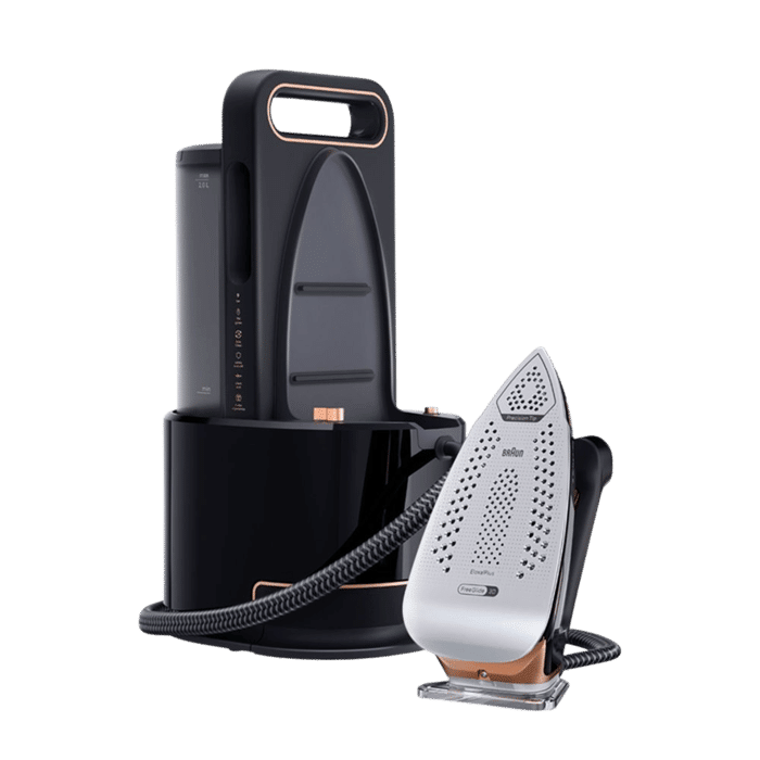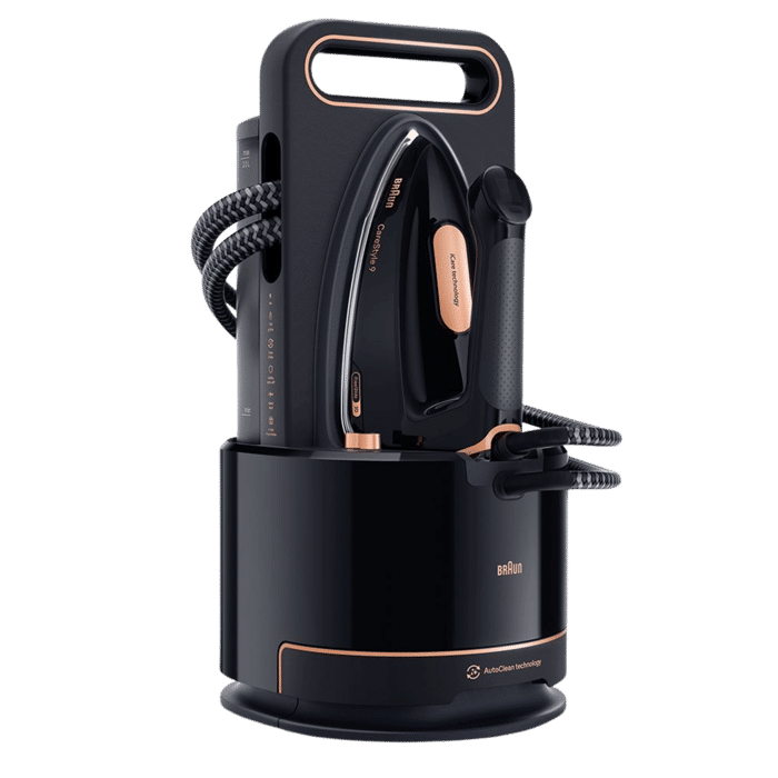 מגהץ הקיטור העילית של Braun עם ביצועים אולטרה-חזקים וגימור שחור יוקרתי.