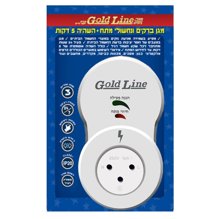 מגן ברקים ונחשולי מתח + השהיה 5 דקות גולד ליין gold line LPP-02