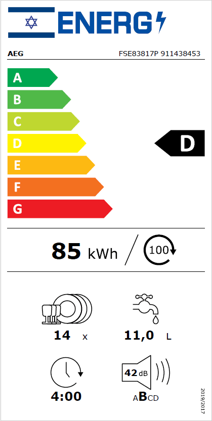 מדיח כלים אינטגרלי מלא AEG א.א.ג FSE83817P