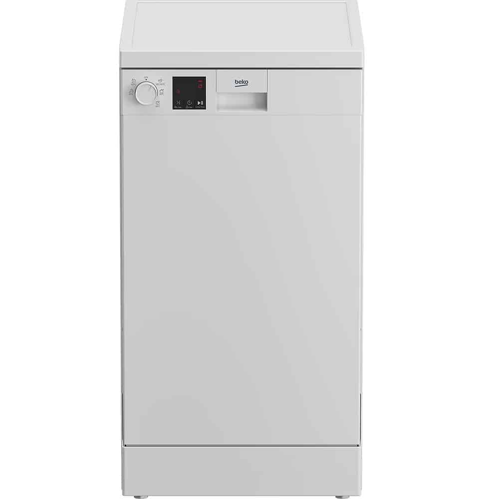 מדיח כלים צר 5 תוכניות Beko עם 10 מערכות כלים 5 תוכניות הדחה, מערכת מים סגורה הכוללת 2 ממטרות וגוף חימום נסתר.