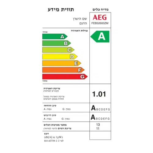 צריכת חשמל למחזור סטנדרטי: 1.01 קוט”ש