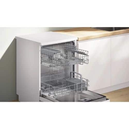 מדיח כלים רחב מבית Bosch, מסדרת Serie 2, עם קיבולת של 13 מערכות כלים. מדיח אמין, חסכוני ונוח לשימוש, בעיצוב קלאסי בצבע לבן, המיוצר בפולין ומבטיח איכות גרמנית ללא פשרות.