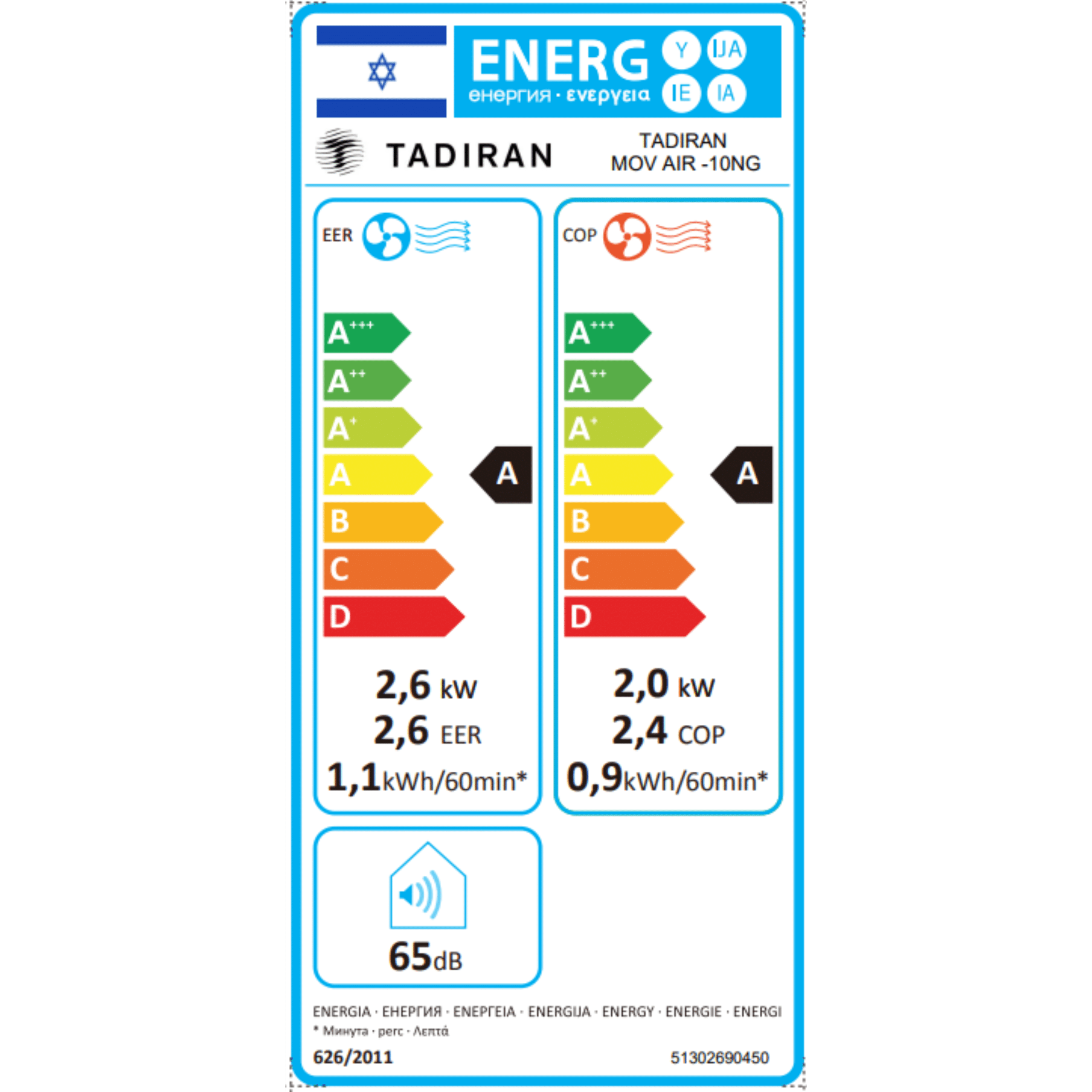 • דירוג אנרגטי A – חסכוני ויעיל