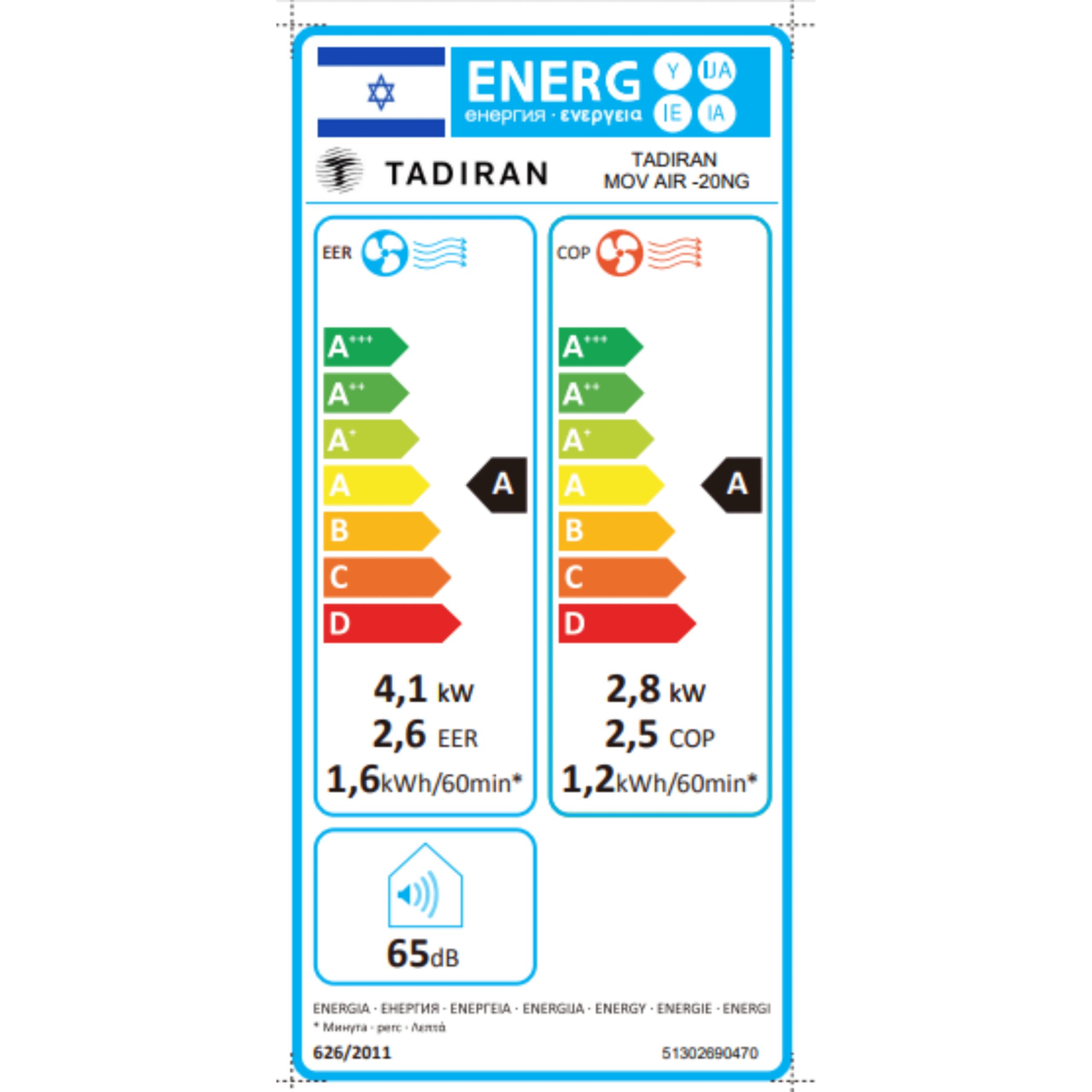מזגן נייד Tadiran MOVE AIR 20NG תדיראן – צבע לבן | קירור 14,024 BTU | אחריות יבואן רשמי