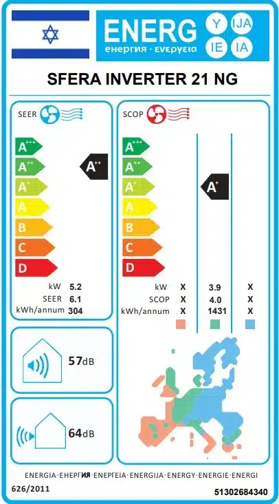 מזגן עילי SFERA INVERTER 21 NG תדיראן TADIRAN