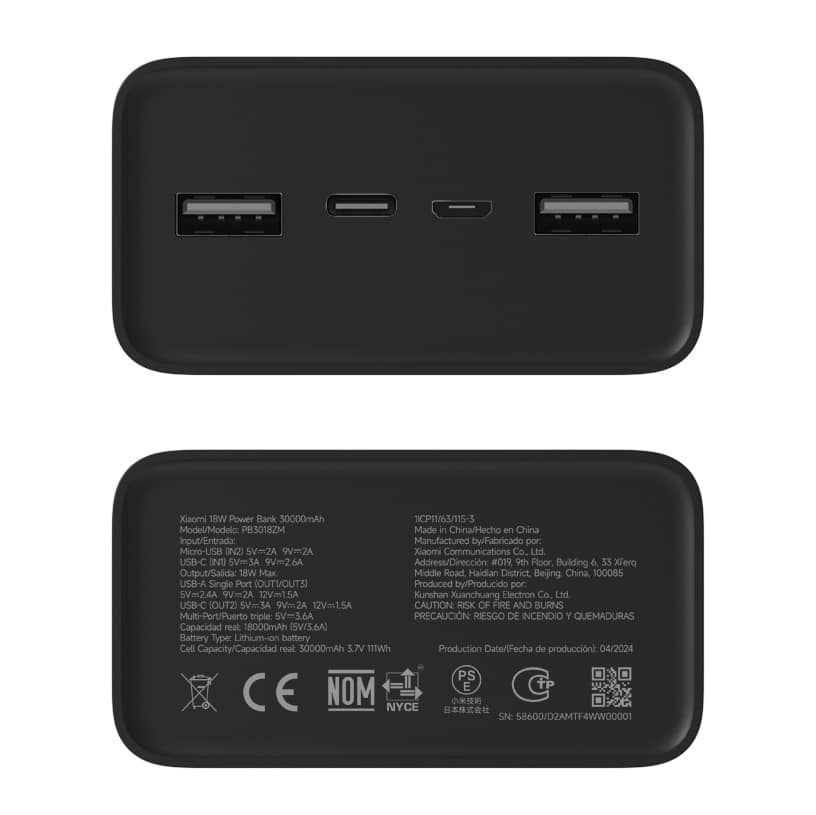 מטען נייד xiaomi שיאומי 18W דגם Xiaomi 18W Power Bank 30000mAh
