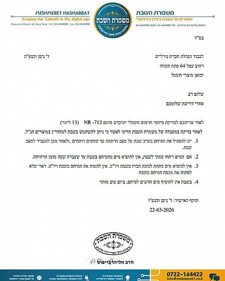 מאושר לשימוש בשבת ע”י משמרת השבת ומכון צומת