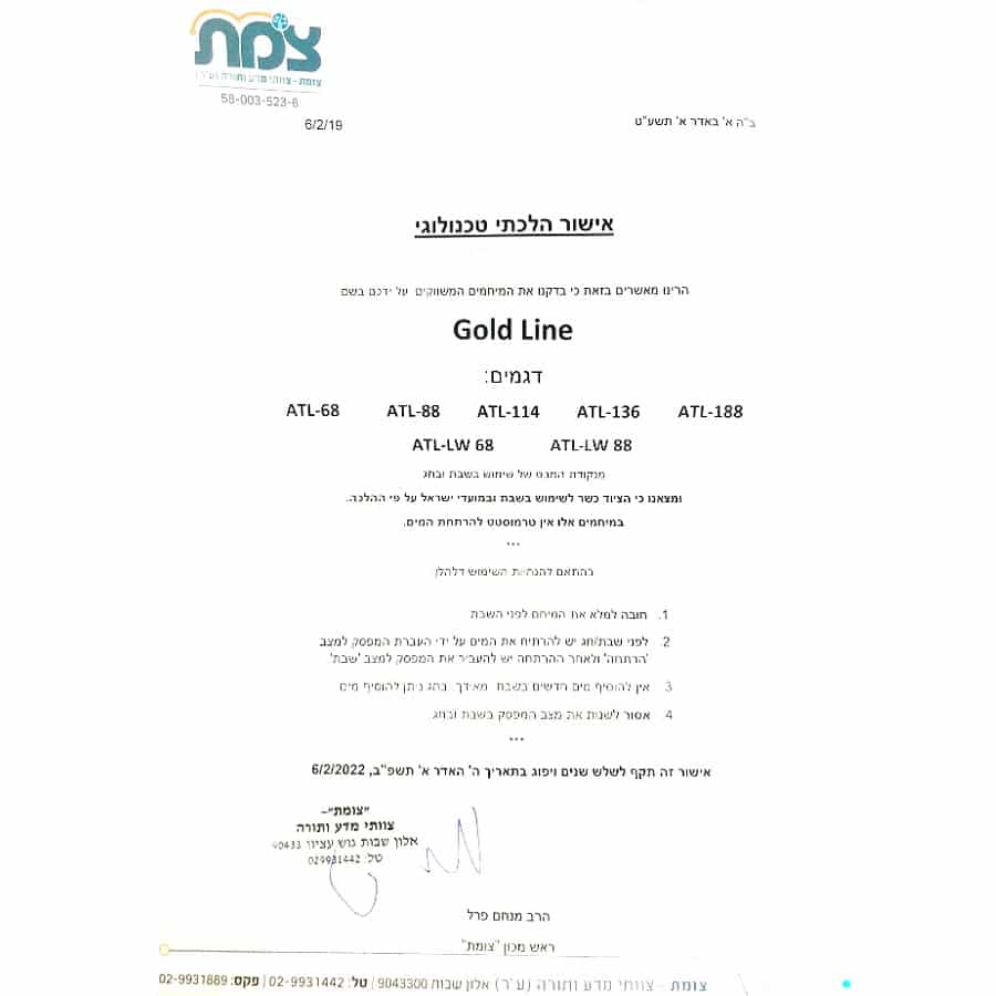 ללא טרמוסטט- מאושר לשימוש בשבת ע”י “צ.מ.ת”