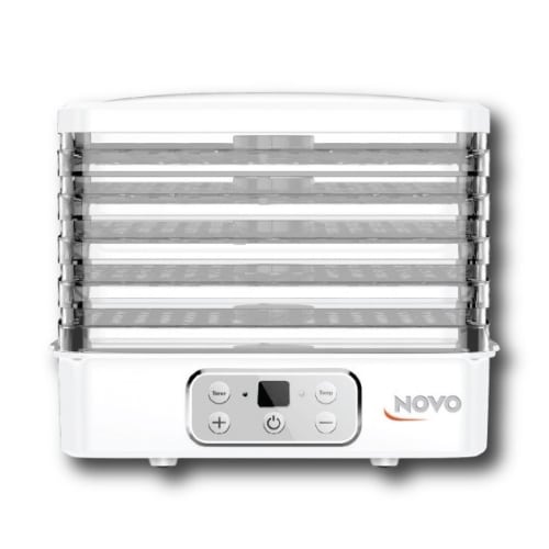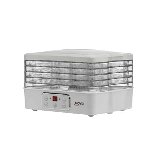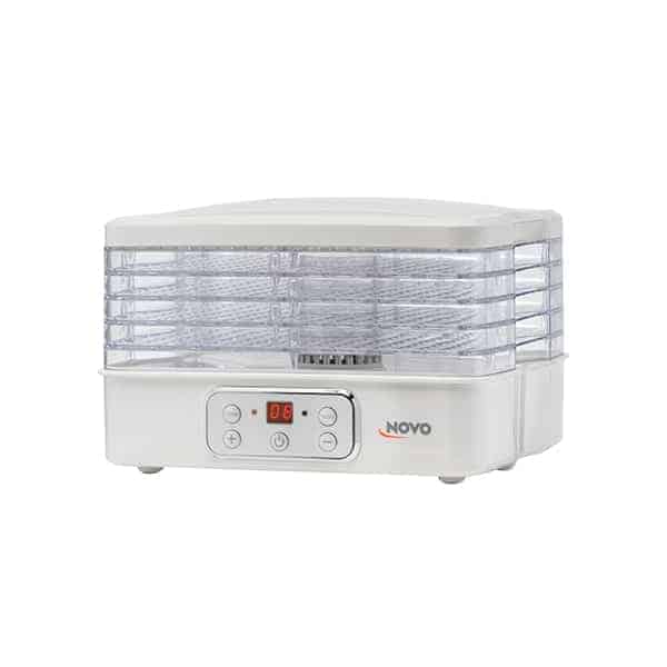 מייבש מזון מבית NOVO איכותי לייבוש יעיל, טבעי ובריא גם בבית יבוש מזון שיוויני ואחיד, שמירה מדוייקת על טמפרטורה וטיימר לכיוון זמן הייבוש הרצוי. מתאים לייבוש כל סוגי הירקות, הפירות ואף בשרים ודגים.