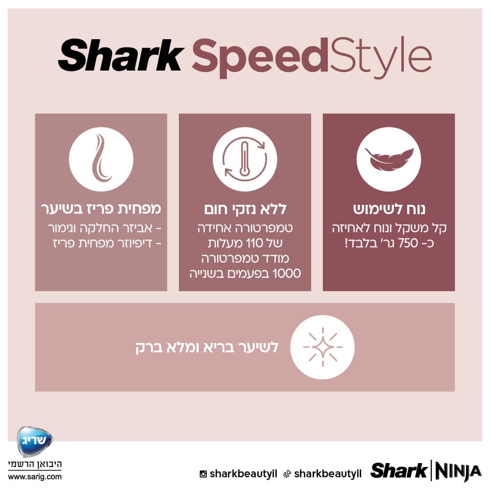 מייבש שיער מהיר ועוצמתי SpeedStyle שארק SHARK דגם – HD353