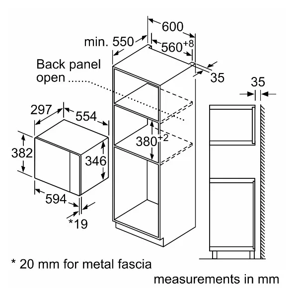 • מיקרוגל בנוי 38 ס”מ ונפח 20 ליטר