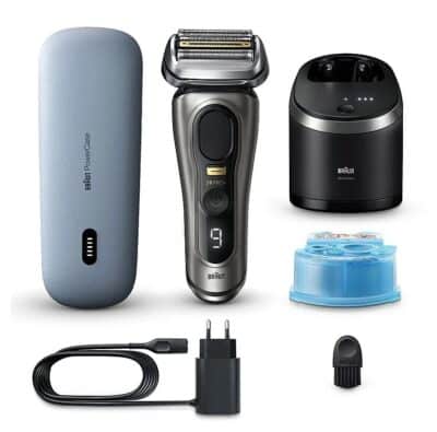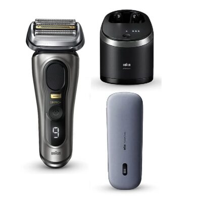 Braun Series 9 Pro Plus 9575cc – מכונת גילוח מתקדמת לשימוש יבש ורטוב, עם תחנת ניקוי חכמה, טכנולוגיית Sonic ו-ProLift Trimmer. גילוח חלק, מדויק ועדין לעור.