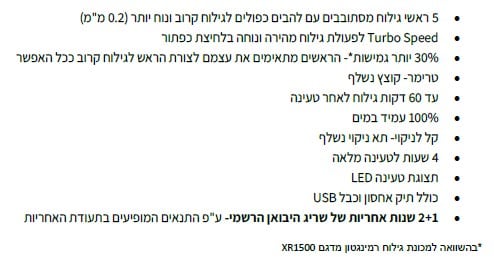 - אחריות משתנה מפריט לפריט – ראה באתר היבואן
