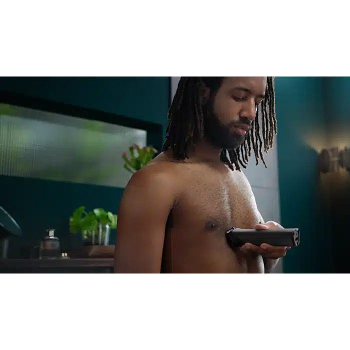 גלח בנוחות מתחת לצוואר עם אביזר מכונת הגילוח לגוף שלנו. מערכת ייחודית להגנה על העור מגנה על אזורים רגישים בזמן גילוח הקרוב ל-0.5 מ”מ. ניתן גם לקצץ את שיער הגוף עם מסרק מתחבר בלחיצה.