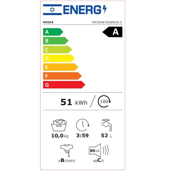 מכונת כביסה פתח חזית 10 ק”ג Midea מידאה MF200W100WB/W-IL/6436 INV