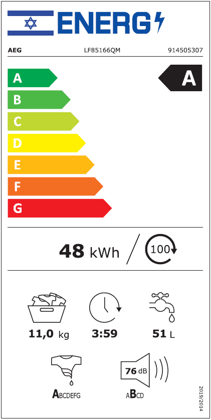 למחזור ECO 40-60 סטנדרטי 11 ק”ג, 239 דקות 0.73Kwh/76 liter