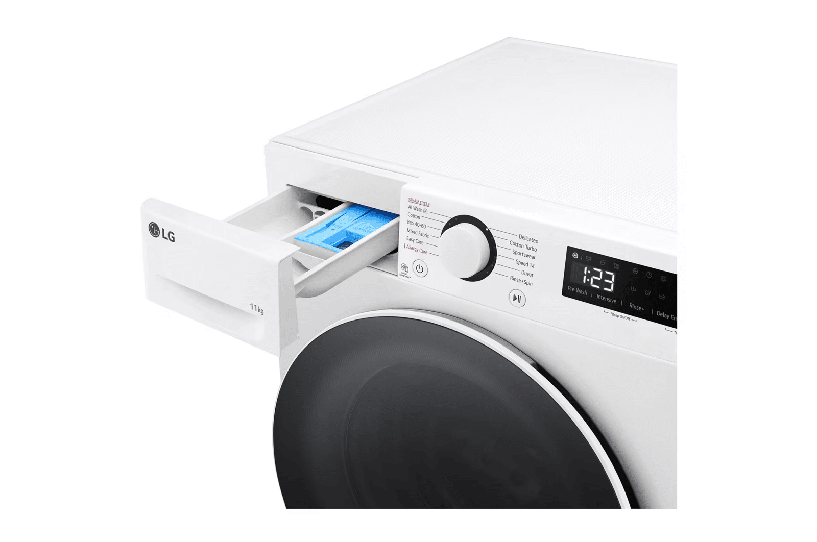 מכונת כביסה פתח חזית 11 ק”ג אל ג’י LG דגם – WF11114WBW דלת שחורה