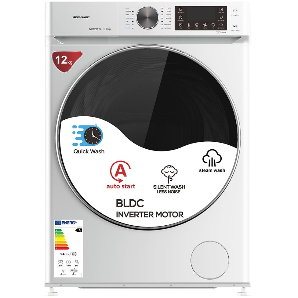 מכונת כביסה פתח חזית 12 ק”ג Normande נורמנדה ND-1214W לבן