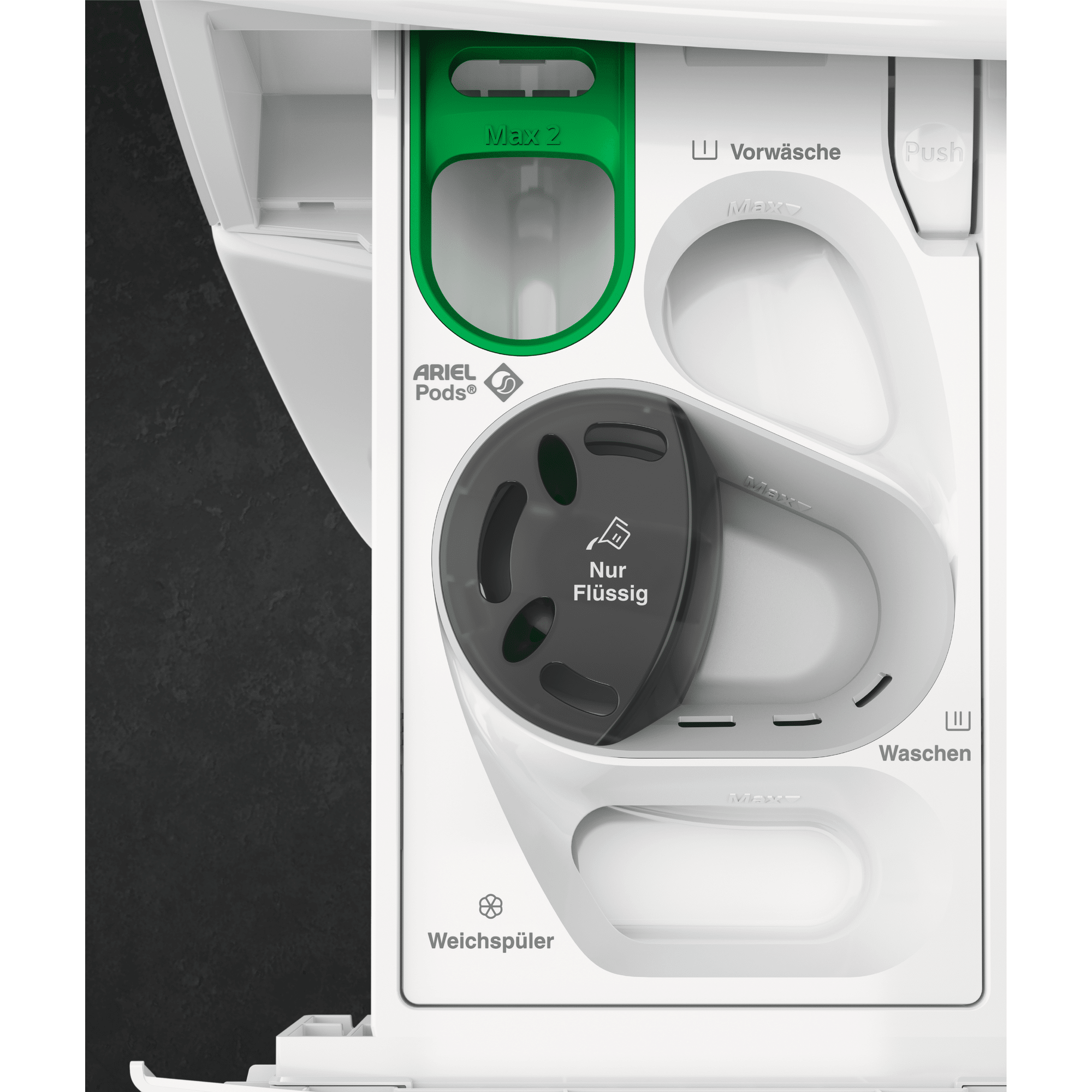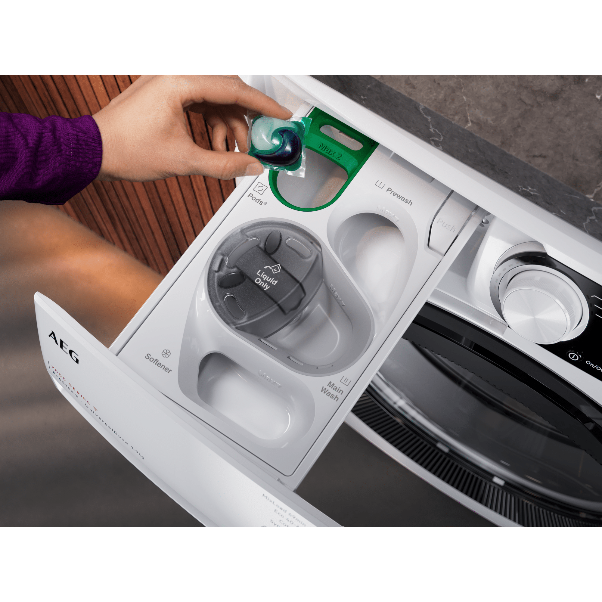 תא חומרי ניקוי ייעודי לקפסולות כביסה המבטיח פירוק הקפסולה בדיוק בזמן הנכון והזרמת החומר ניקוי כך שתקבלו תוצאות ניקוי הזהות לחומרים ניקוי הקלאסיים.