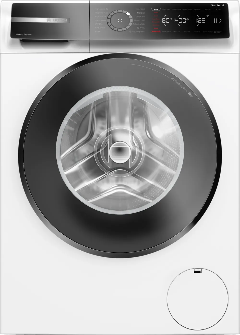 מכונת כביסה מתקדמת מסדרה 8 של Bosch – שילוב אידיאלי של עוצמה, טכנולוגיה חכמה ונוחות שימוש מקסימלית. כוללת חיבור Wi-Fi לשליטה מרחוק (Home Connect), תוף ענק של 70 ליטר ותוכניות ייחודיות לניקוי מדויק ועדין לכל סוג בד.