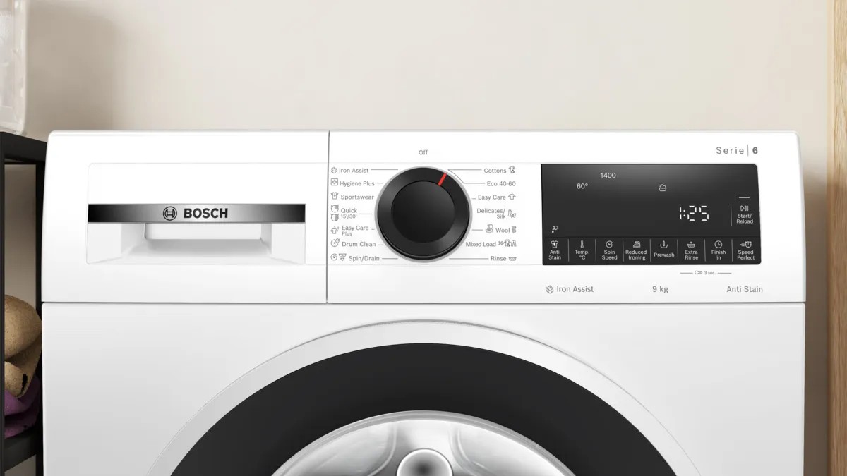 מכונת כביסה מהסדרה 6 של Bosch – שקטה, חסכונית ויעילה במיוחד. אידיאלית למשפחות, עם נפח תוף מרווח של 65 ליטר, מנוע עוצמתי EcoSilence Drive ותכונות חכמות לניקוי מושלם של כל בגד.