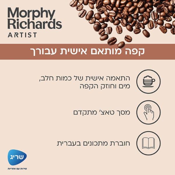 כלול באריזה: מכונת קפה, מיכל חלב נשלף, מברשת ניקוי וחוברת מתכונים בעברית
