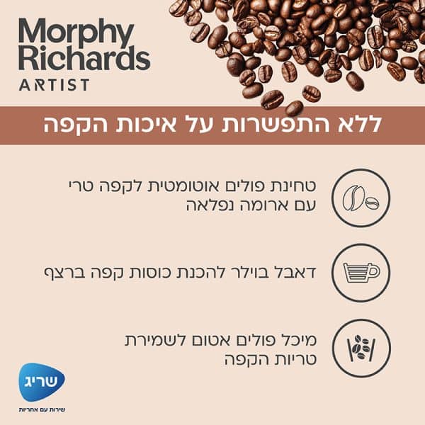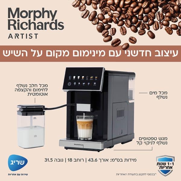 מכונת קפה אוטומטית 20 בר MORPHY RICHARDS מורפי ריצ`ארדס דגם – 470803