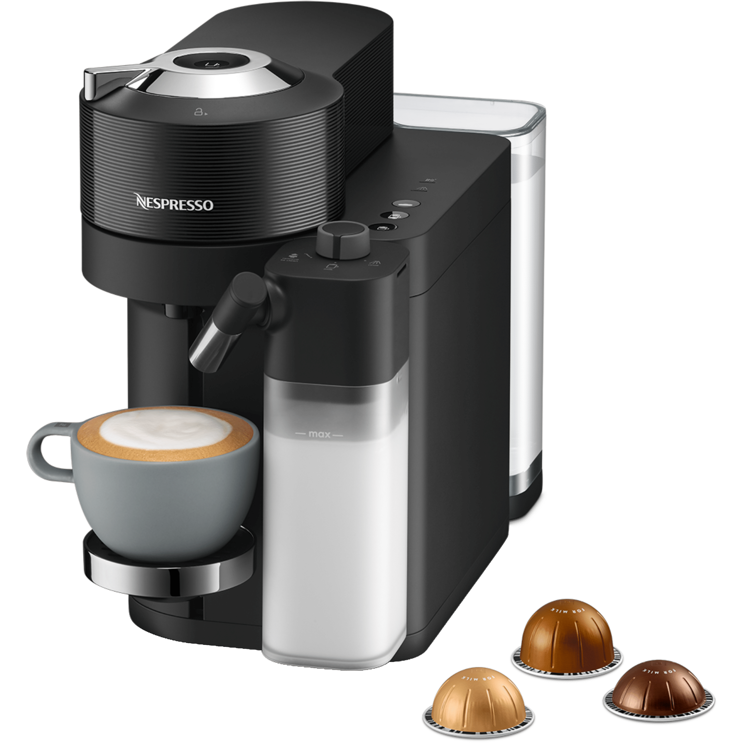 VERTUO LATTISIMA היא מערכת קפה אוטומטית עם פתרון חלב מובנה.