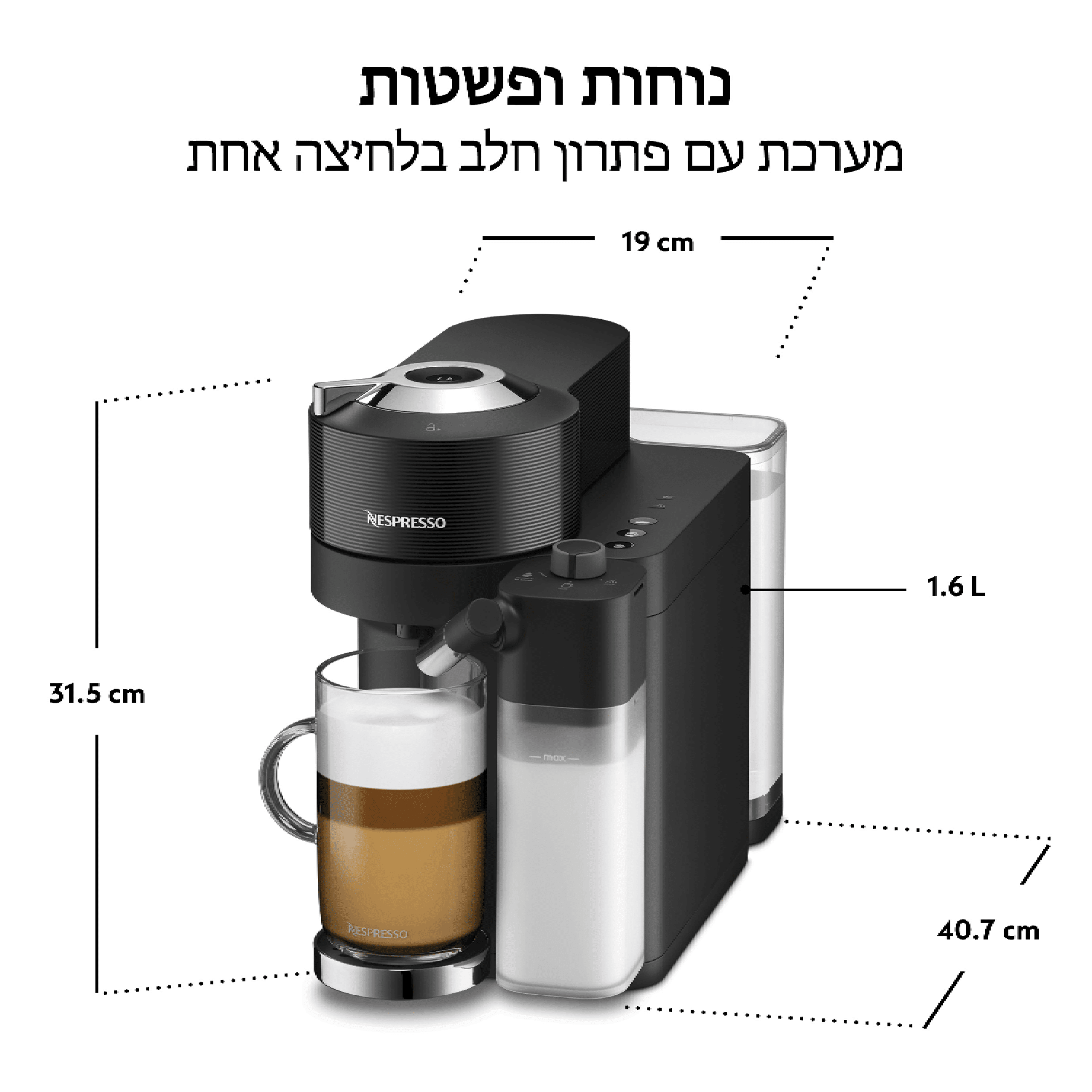 מכונת קפה Nespresso Vertuo Lattissima דגם – GDV5-IL-BK-NE צבע שחור שנה אחריות ע”י היבואן הרשמי